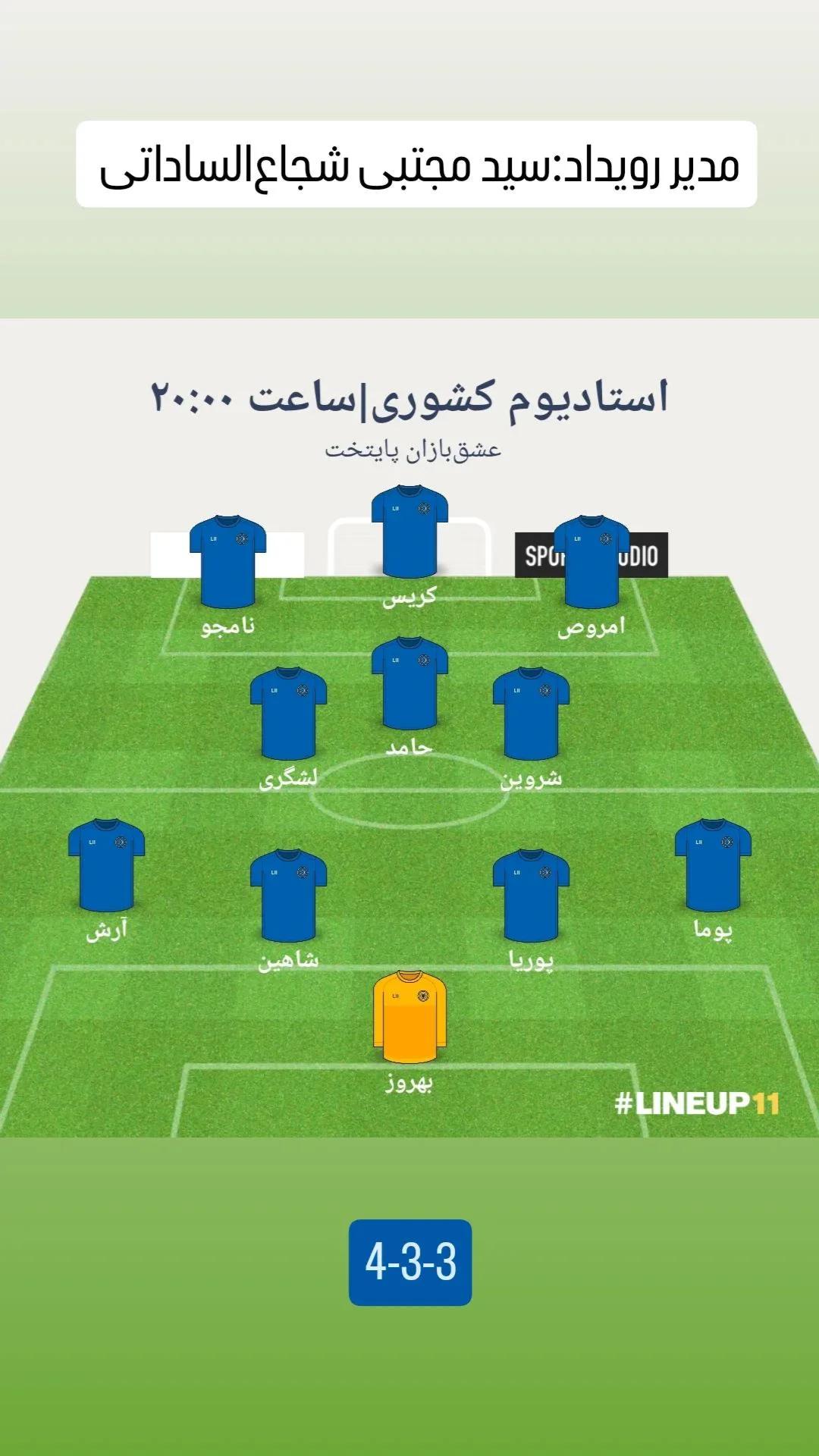 | عنوان بازی: | فوتبال چمن بزرگ 11 به 11 / استادیوم شهید کشوری |