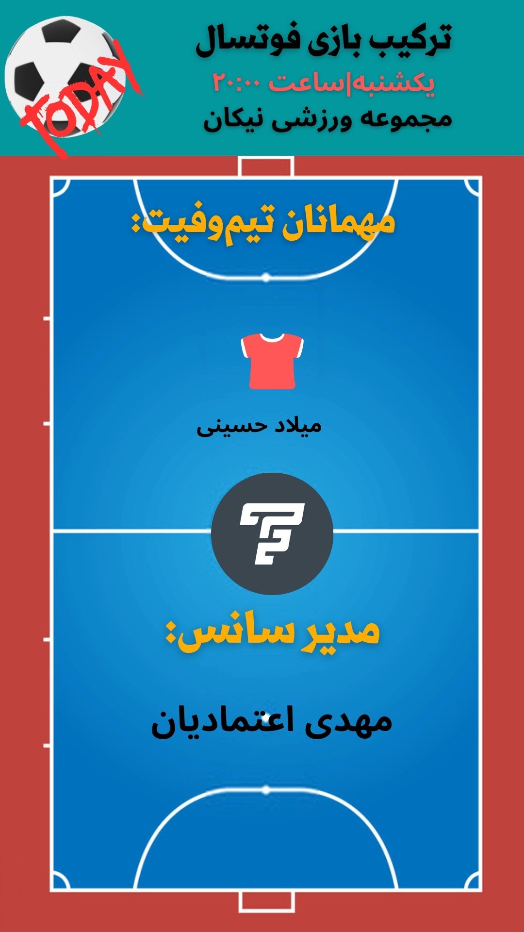 عنوان بازی: | فوتسال ویژه یکشنبه ها / مجموعه ورزشی نیکان |