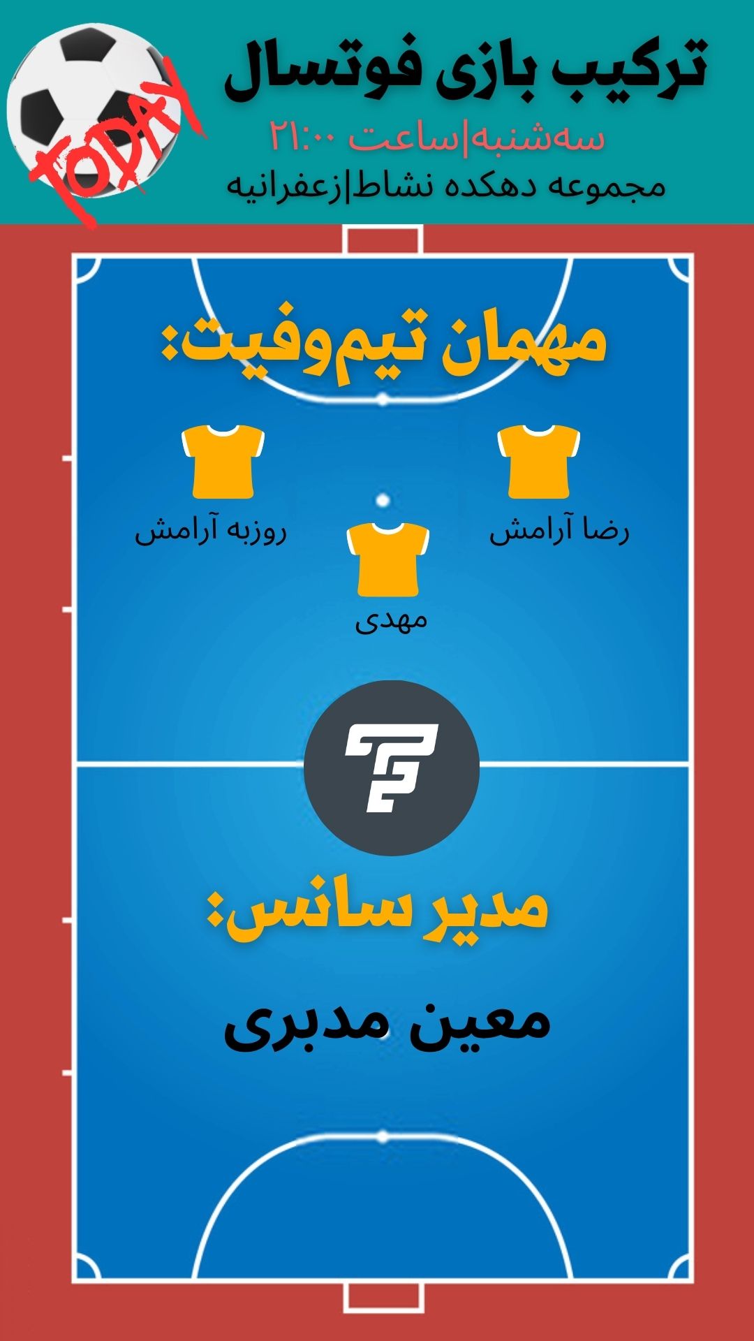 | عنوان بازی: | فوتسال / مجموعه دهکده نشاط / زعفرانیه |