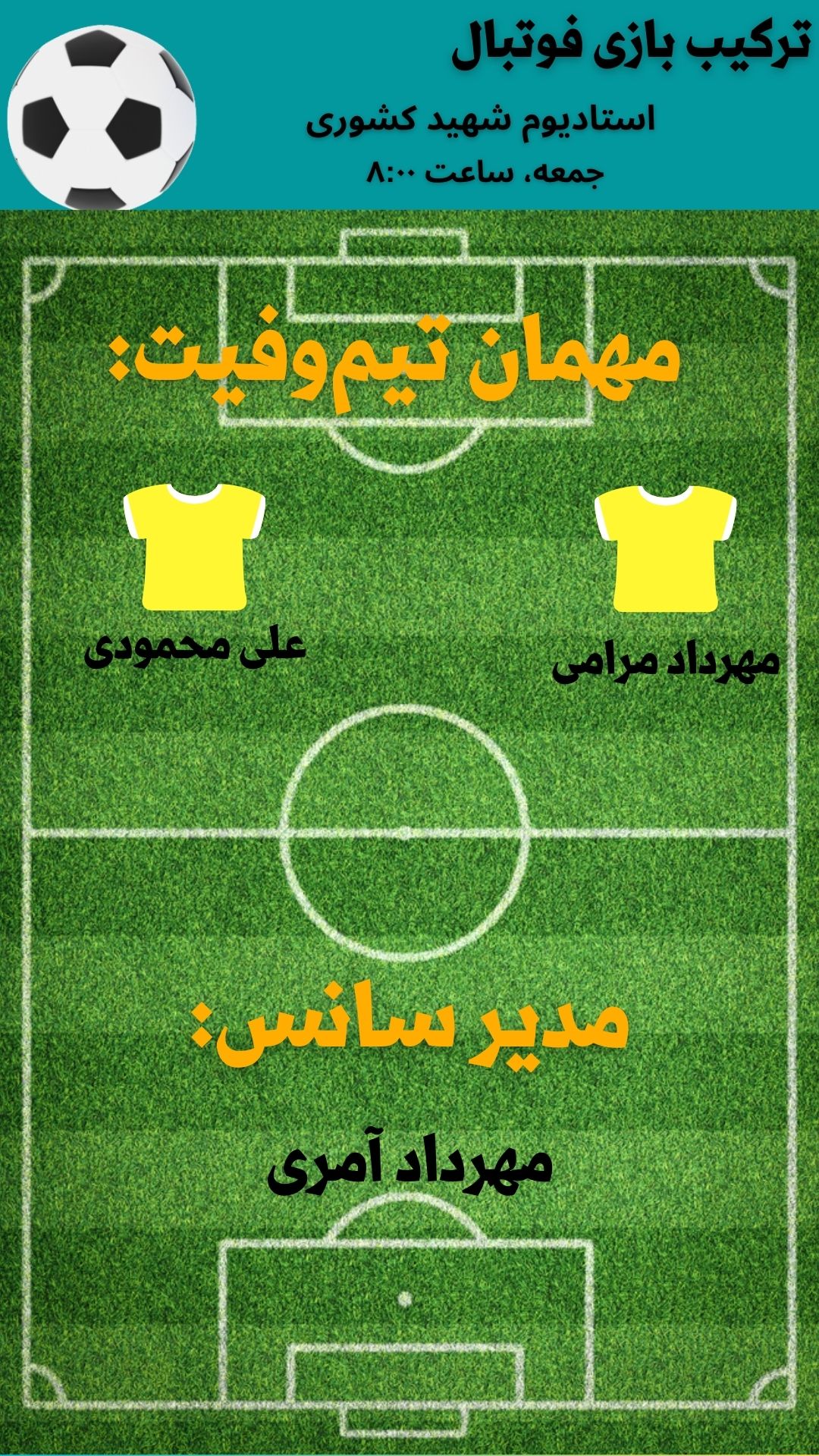 | عنوان بازی: | چمن بزرگ ۱۱ به ۱۱ / استادیوم کشوری / عامری |