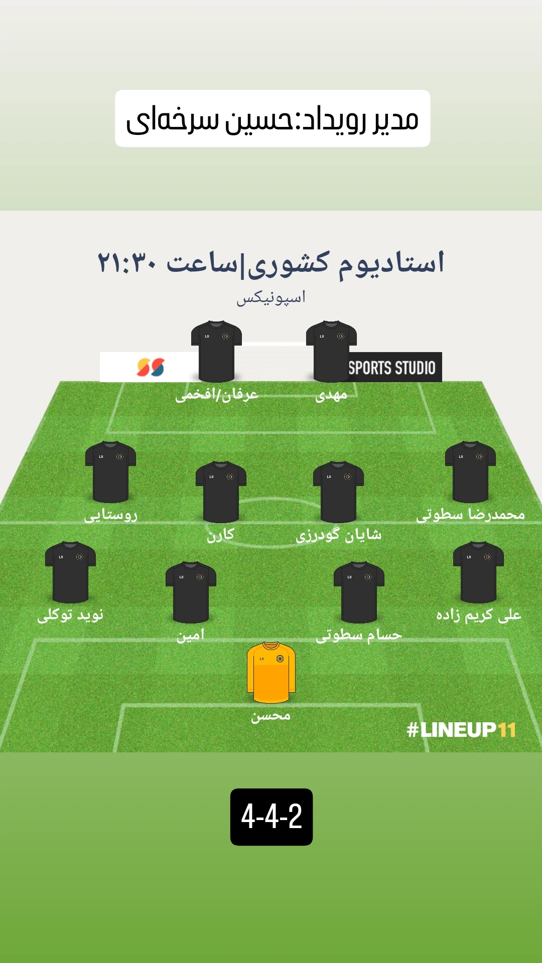 | تعداد بازیکن قطعی: | تیم اول :11 تیم دوم :12 |